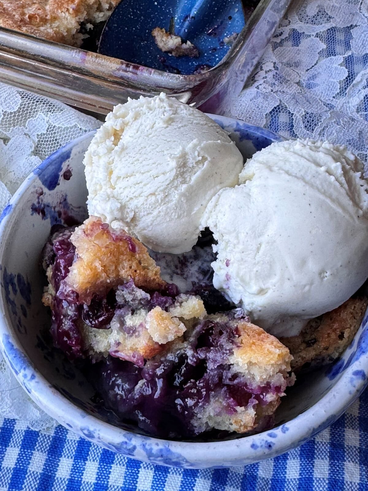 I really like this cobbler served heat with ice cream. I feel that’s one of the simplest ways to take pleasure in it, however for those who don’t have ice cream it’s good with whipped cream too!